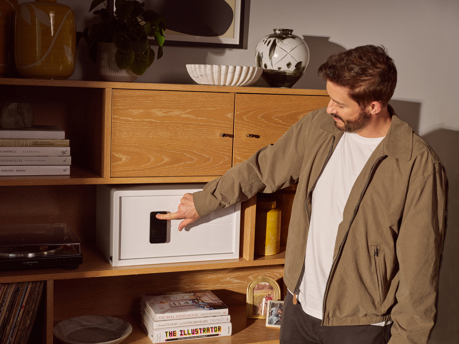 Advanced security, now at your fingertips. Designed to live in your closet or cabinet, the Touch’s biometric fingerprint security makes advanced protection effortless. With ⅛ inch-rolled steel and tamper-proof door bolts, alongside a removable shelf, Touch keeps your jewelry, documents and devices secure - and right where you want them.